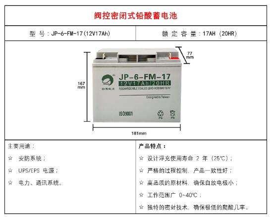 劲博电池JP-HSE-3.3-12(12V3.3Ah)