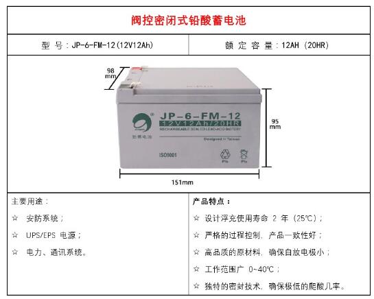 劲博电池JP-HSE-3.3-12(12V3.3Ah)